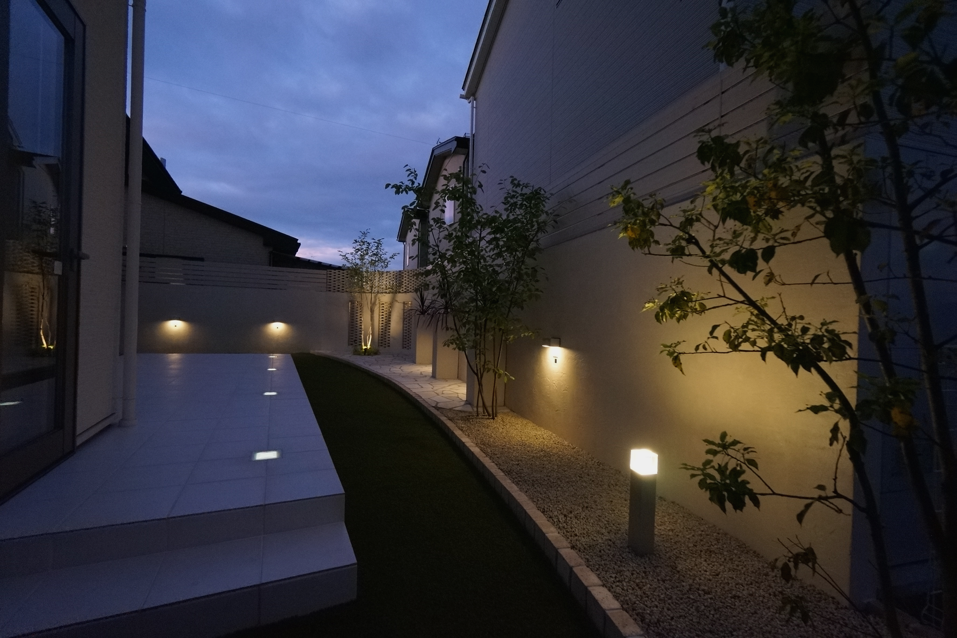 ⼀つひとつの住まいの個性を⼤切にしながら、⾃社の社員が丁寧にプランニングと⼯事をしました。私たちは外構⼯事を通じて、お客様の新しい物語を描くお⼿伝いをします。