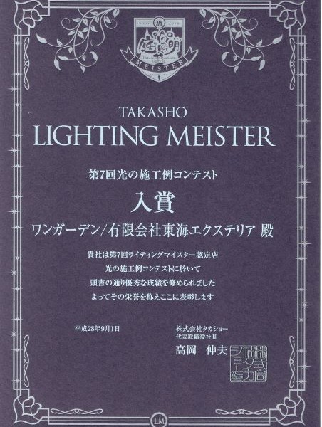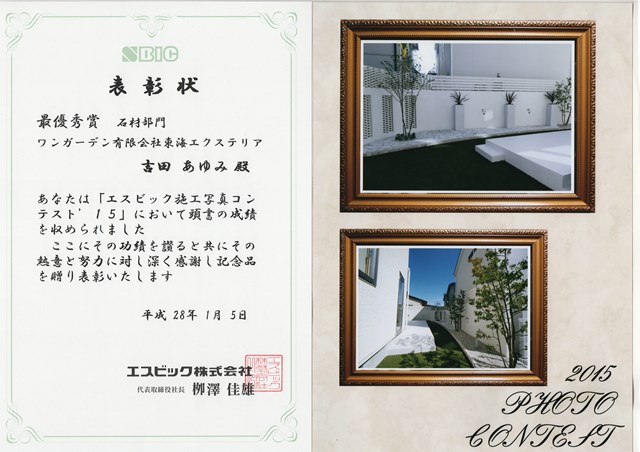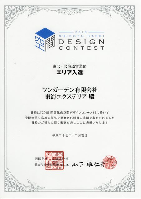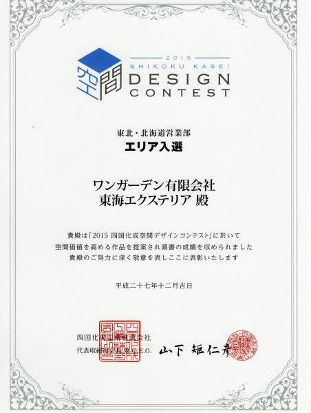 受賞歴 ワンガーデンの設計・施工はメーカーの主催するエクステリアコンテストでたくさんの賞をいただいております。「自社設計・自社施工のワンガーデンだからできる」を評価していただき、それを励みに日々研鑽を重ねています。 その他受賞歴・サービス ガーデンルーム エクステリア 人工芝