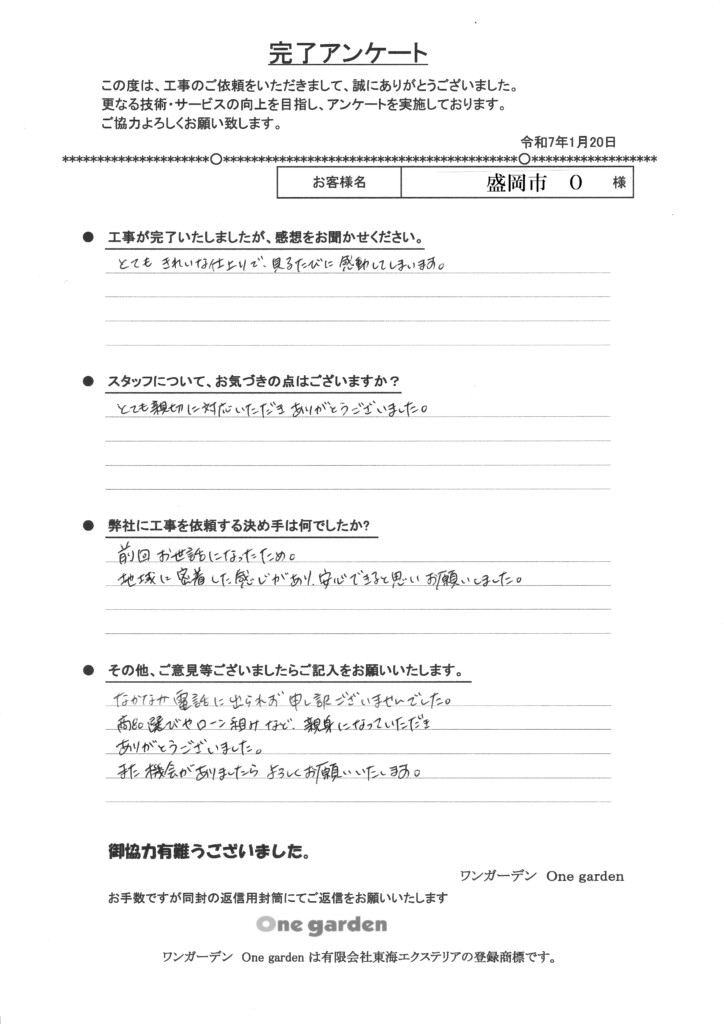 工事が完了いたしましたが、感想をお聞かせください。