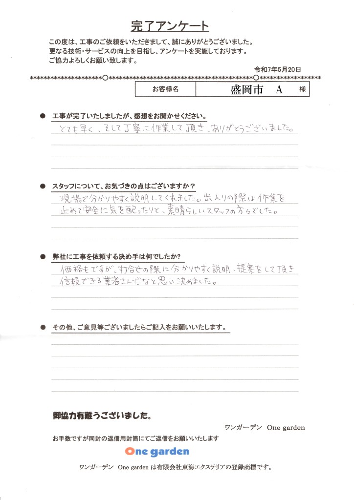 とても早く、そして丁寧に作業して頂き、ありがとうございました。