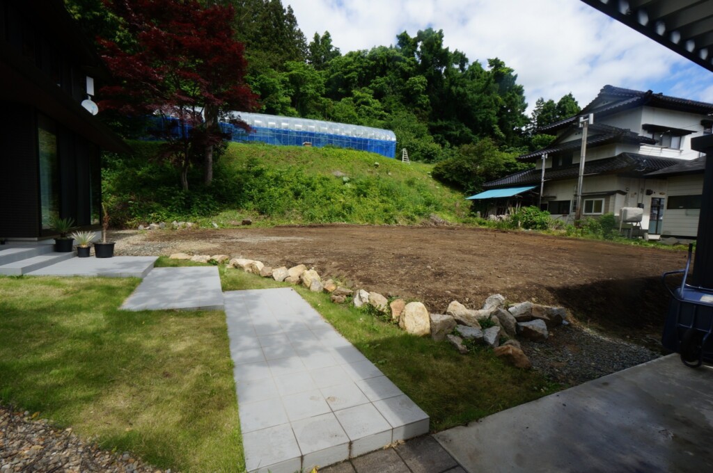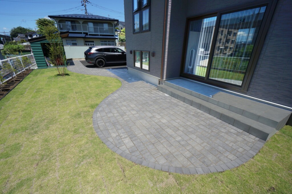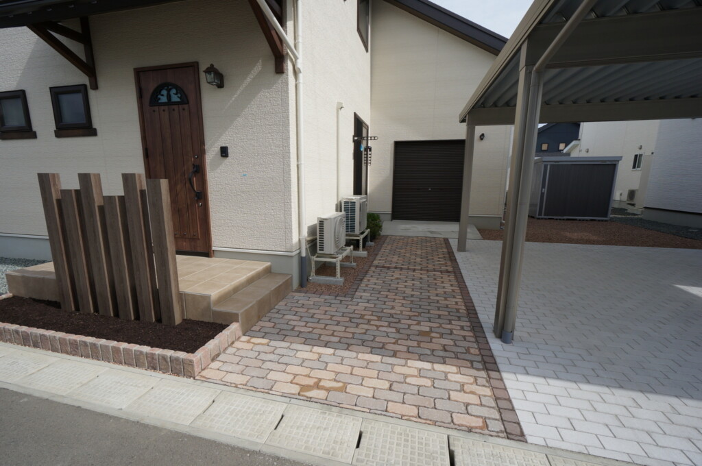 玄関付近のインターロッキング部分の目地(砂材)が、結構早い段階からエグれてしまっていました。(軒先から落ちる雨水の影響?)別に急ぐものではありませんので、お近くに来た際にでも確認していただけると助かります。