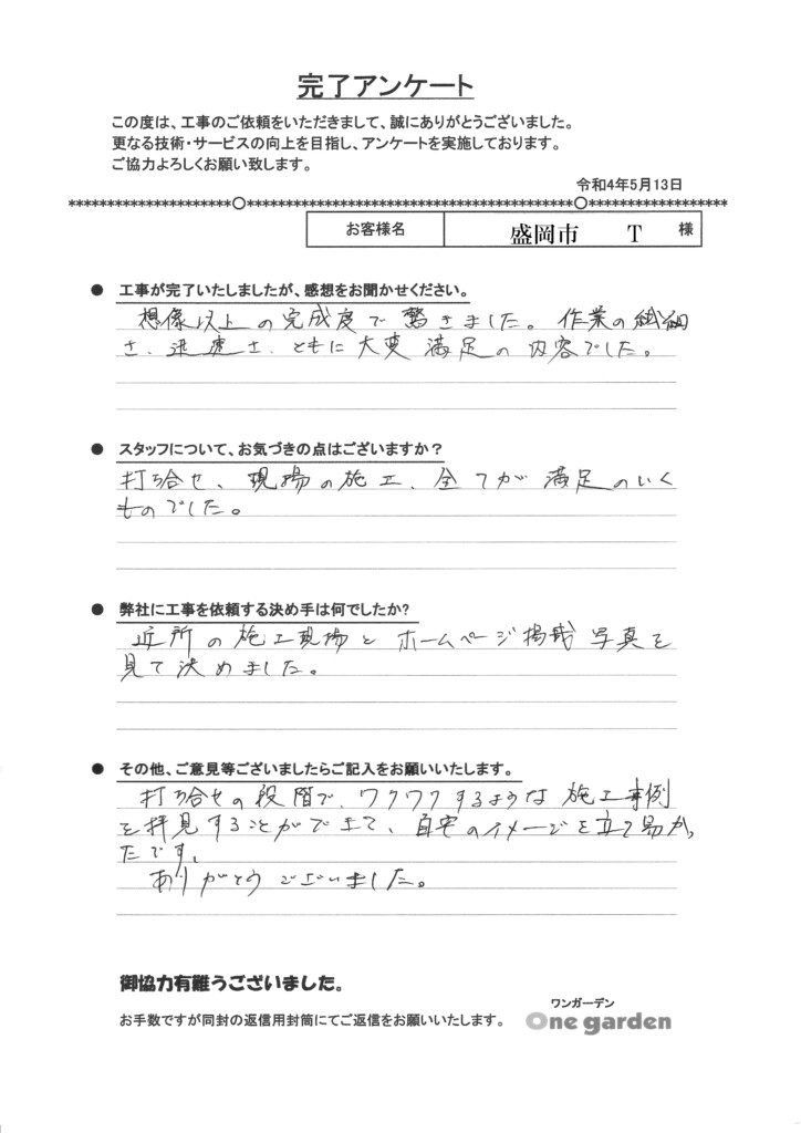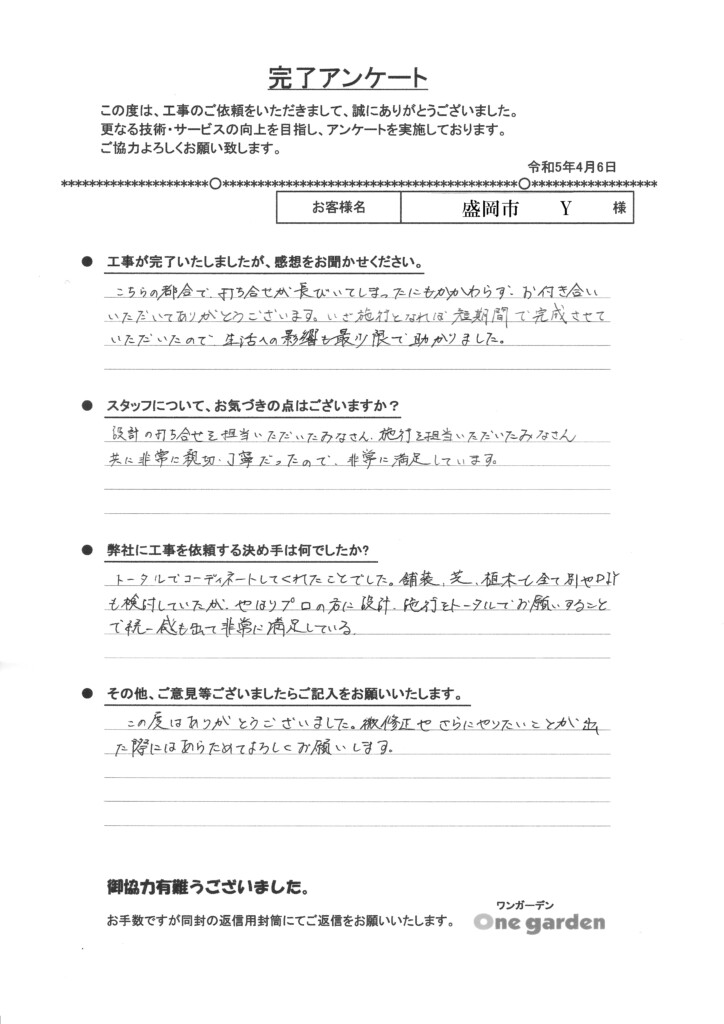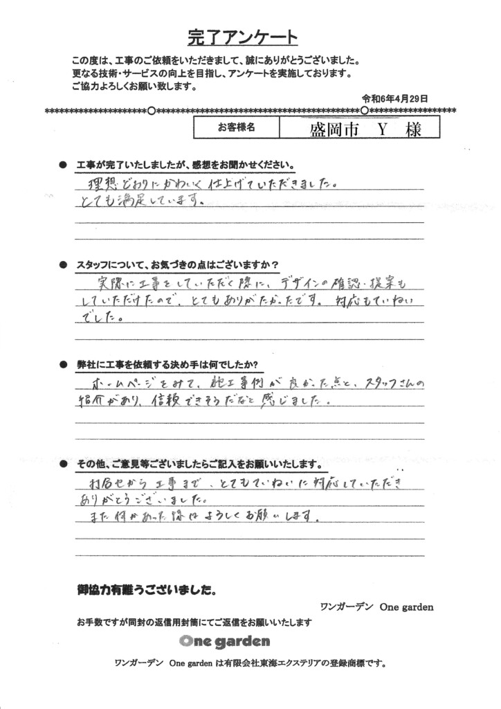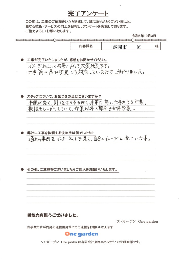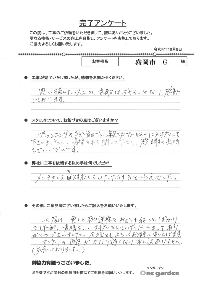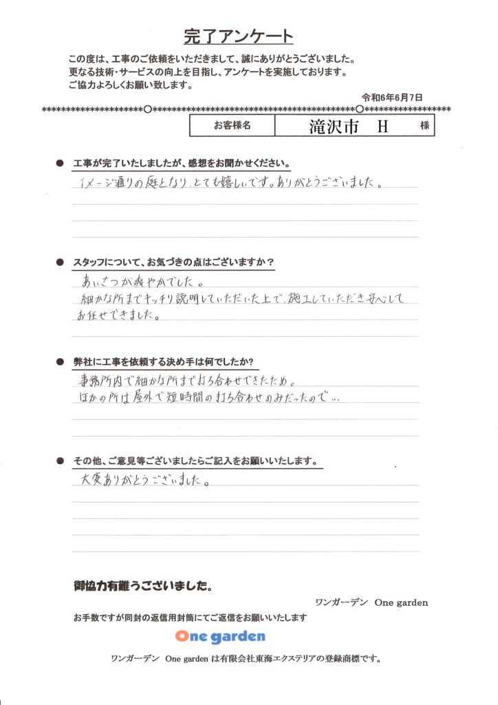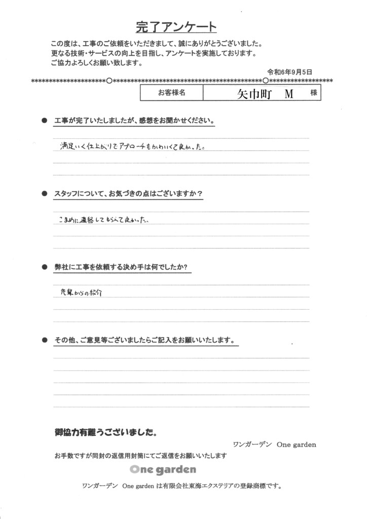 とても素敵に作っていただき、ありがとうございます。お気に入りの庭になりました。
