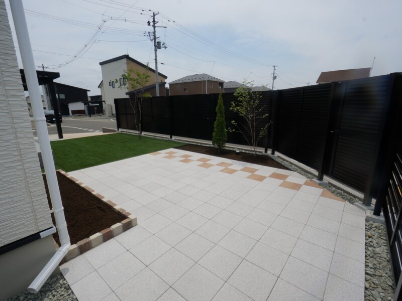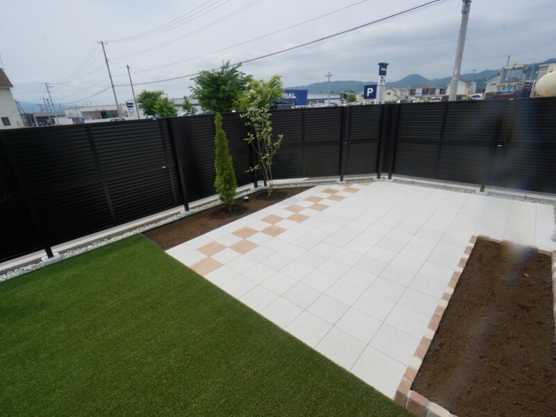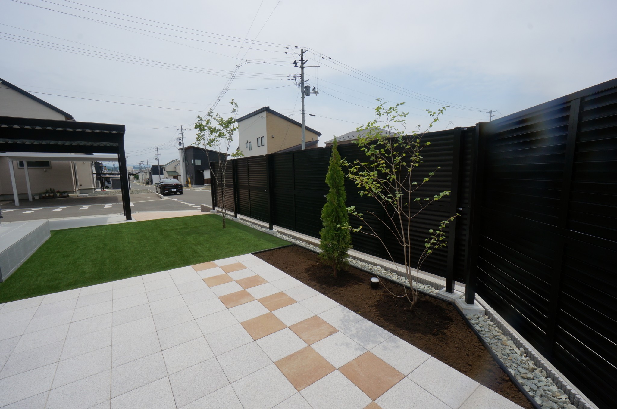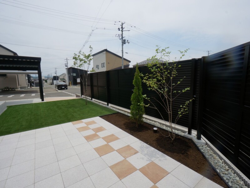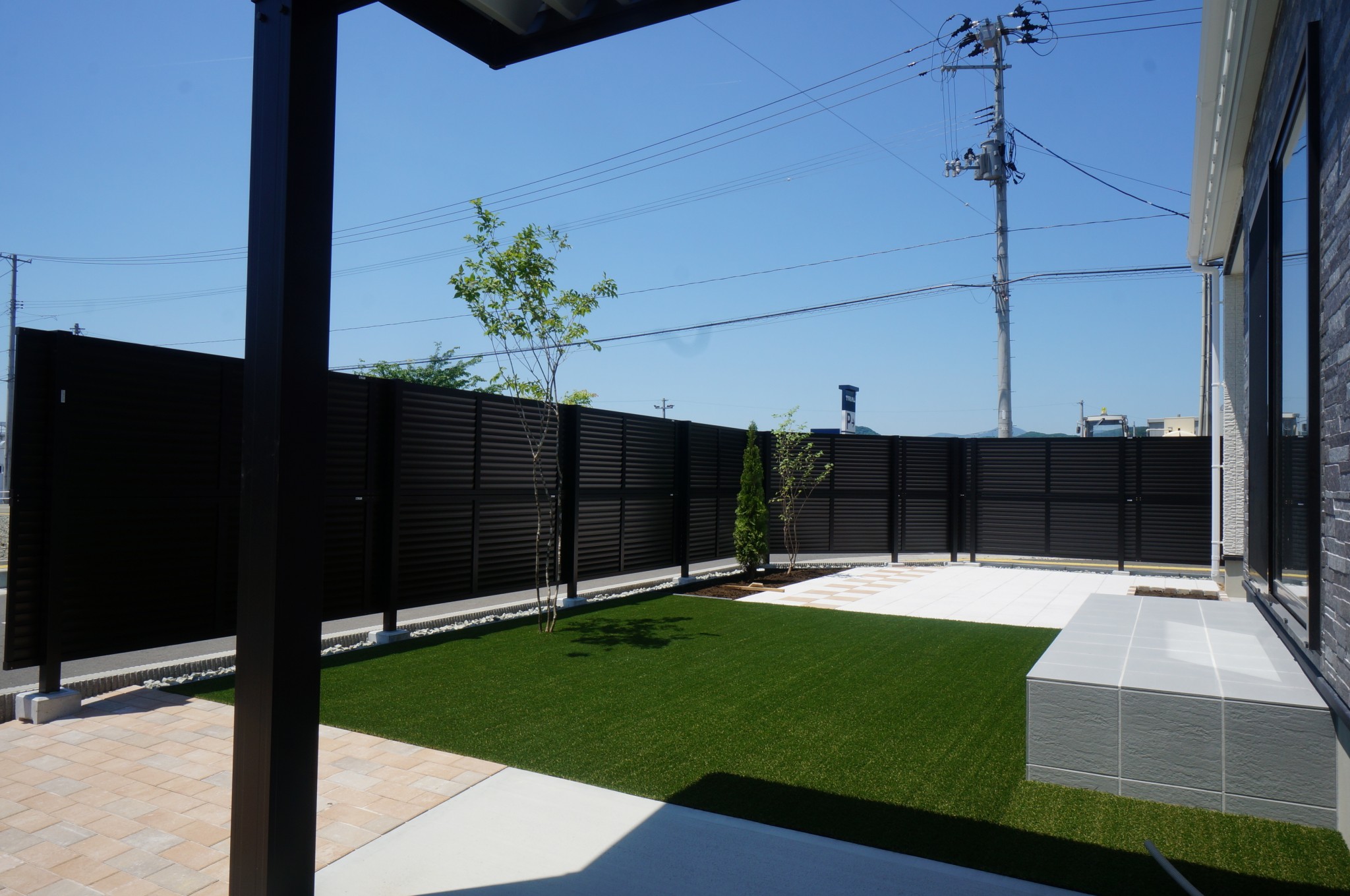 お庭のプライベート空間をしっかり作れるようにシンプルなフェンスを設けしっかりと目隠し。
