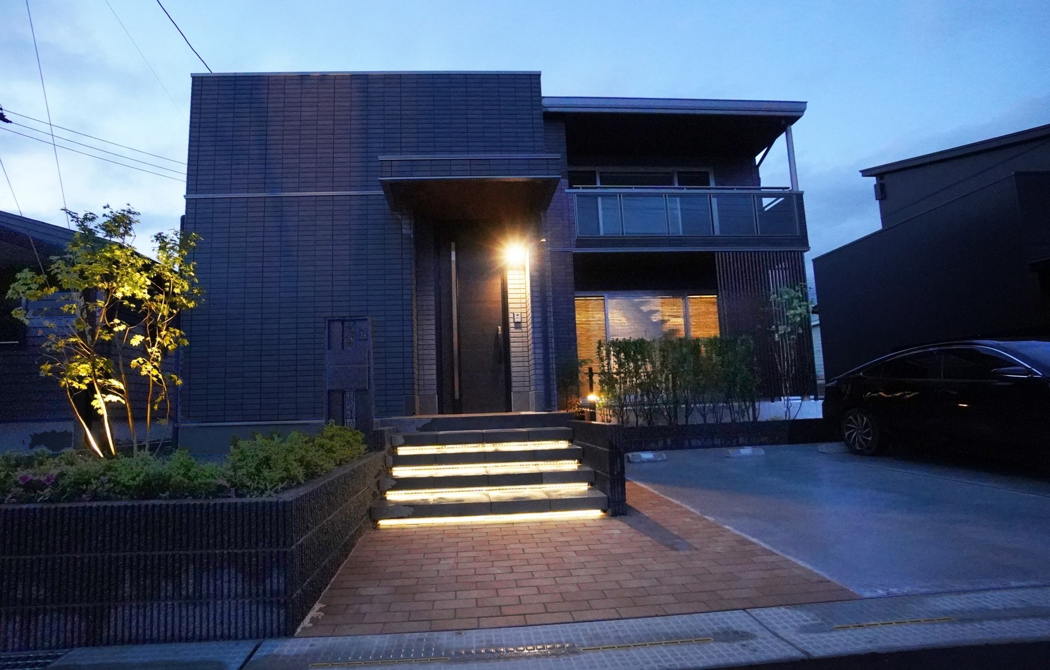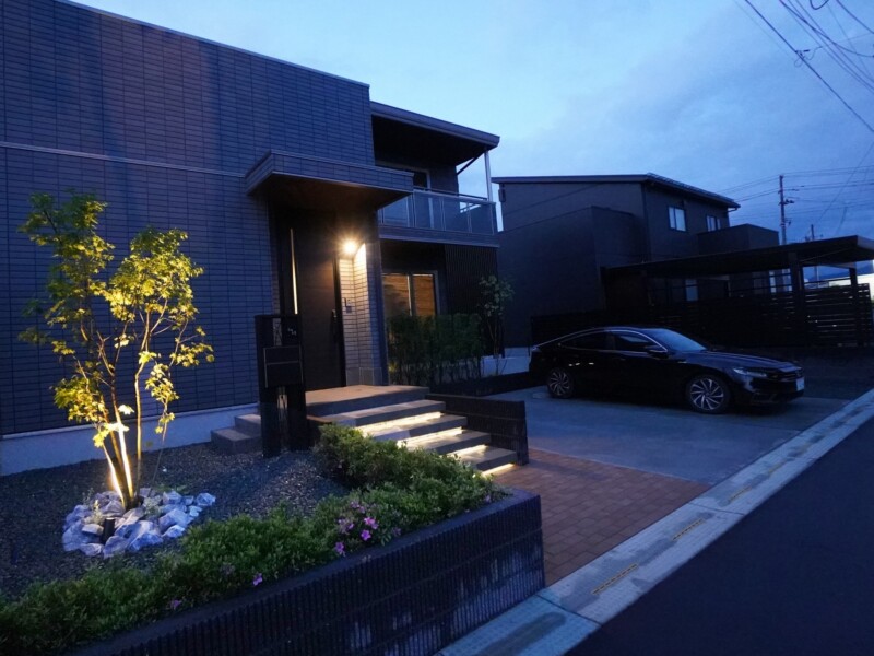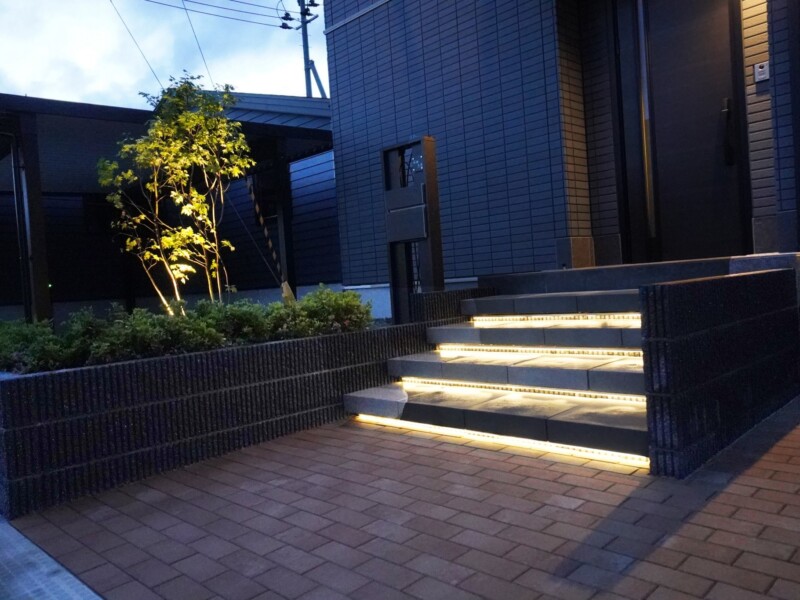 光の浮遊階段 オアシスプライベート空間外構紫波広々とした庭 所在地 紫波町 光の階段がお出迎え 浮遊感のある階段にライトを取付け印象的な玄関前となりました。道路との高低差のある敷地をいかした重厚感のあるエクステリアです。緑も効果的に取り入れ開放感もありながら重厚感もあります。LEDのやさしい光がとても素敵です。 DATA 化粧ブロック スレンダーリブ (エスビック) アプローチ インターロッキング ロシェ・ナチュラル (エスビック) 階段 ニュートステップ (東洋工業) フェンス フェンスAB YS3型 (LIXIL) LEDライト エバーアートポールライトローボルト12型・ドットレスLEDバー・ガーデンアップライトルーメックスリム (タカショー) その他施工実例 南国風リゾートガーデン 所在地 盛岡市 青と白のリゾートガーデン 所在地 盛岡市 リフォーム・緑鮮やかなグリーンガーデン 所在地 北上市