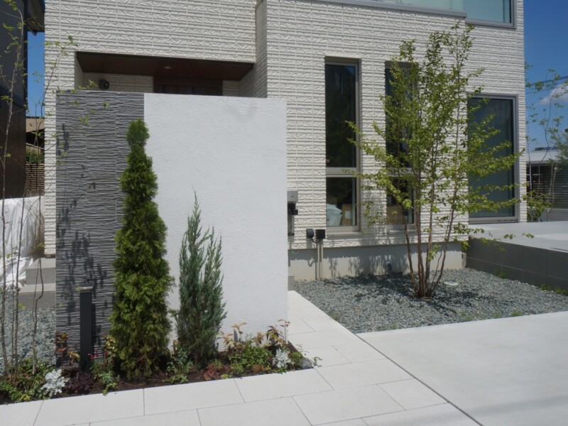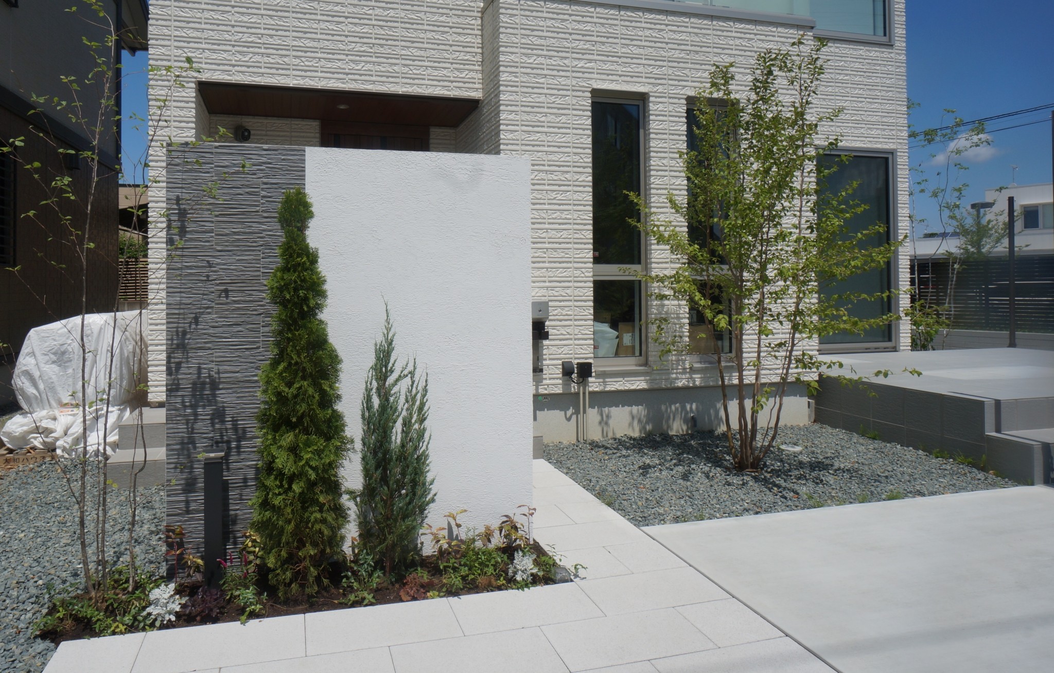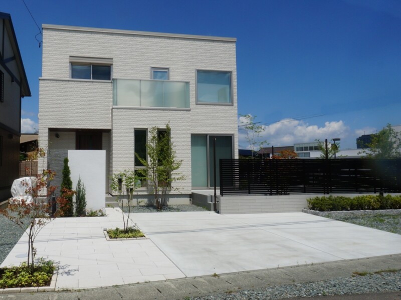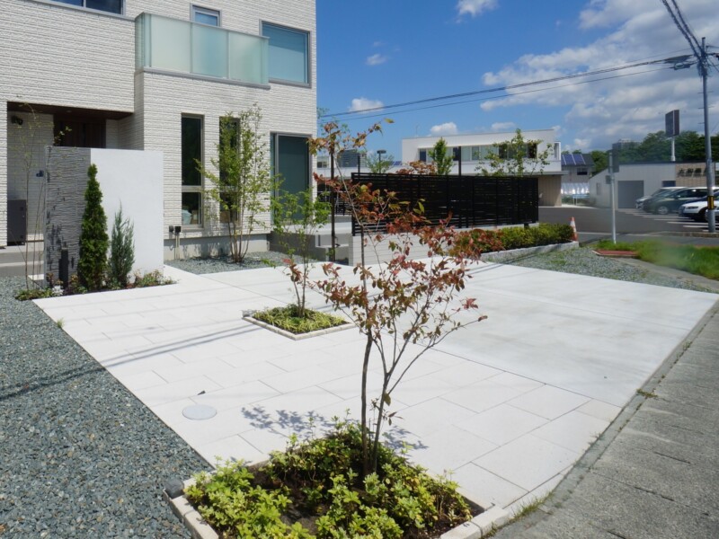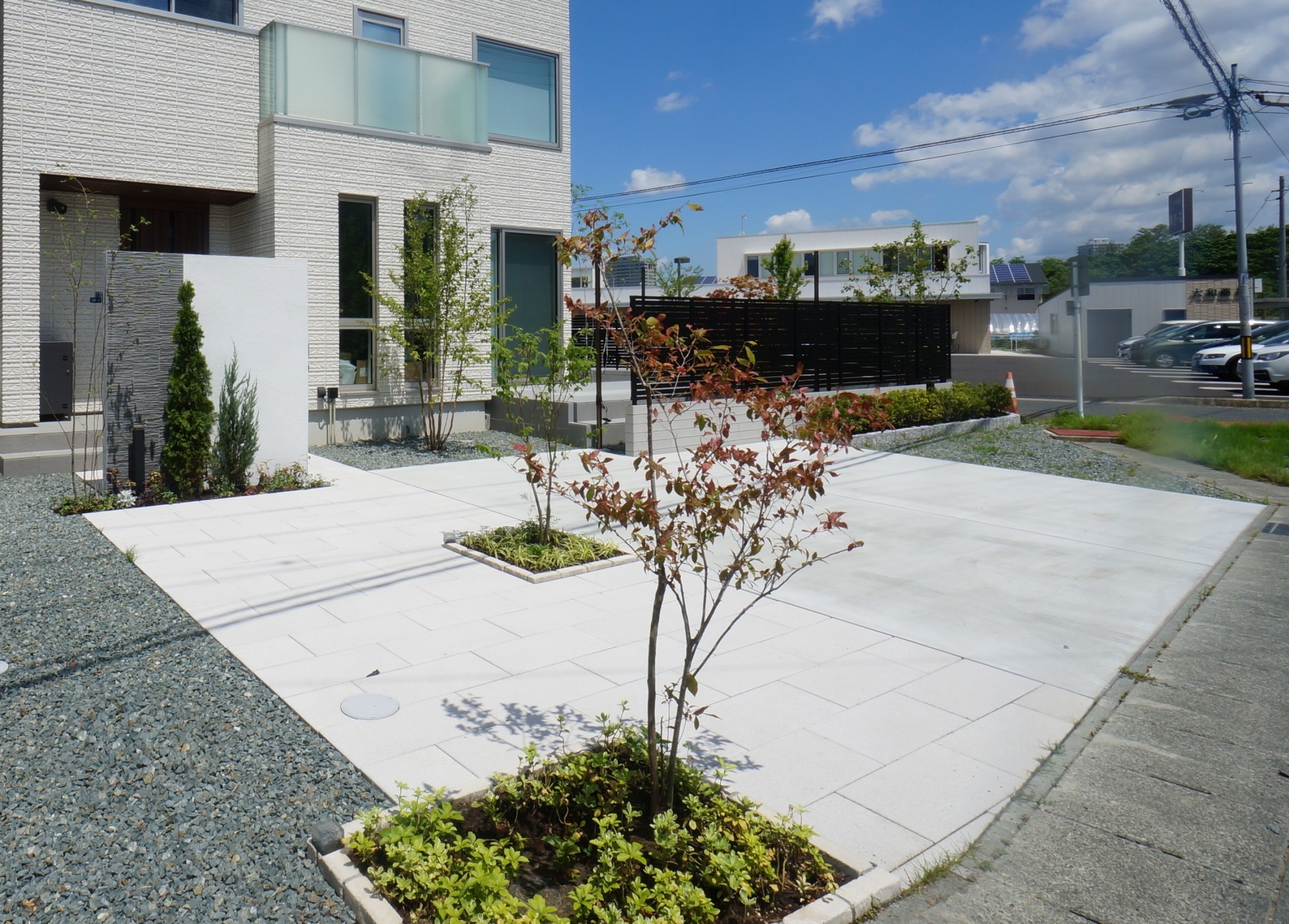 たくさんの木々がお庭を囲んで緑溢れる空間となっています。フェンスで程よくプライベート空間を仕切りでも圧迫感のない開放的な雰囲気になっています。タイルテラスはリビングから段差なく出入りでき快適です。木々がどんどん生長してもっと緑豊かな空間となるでしょう。