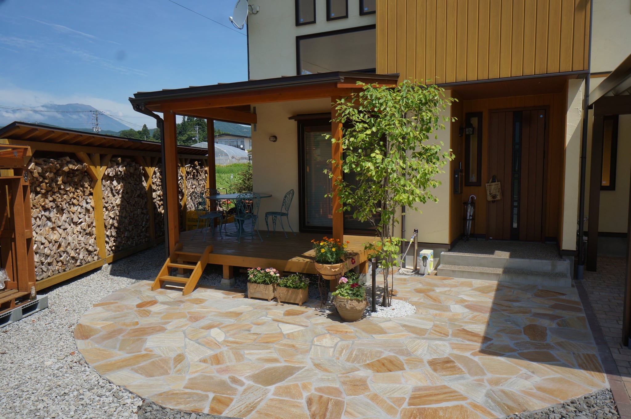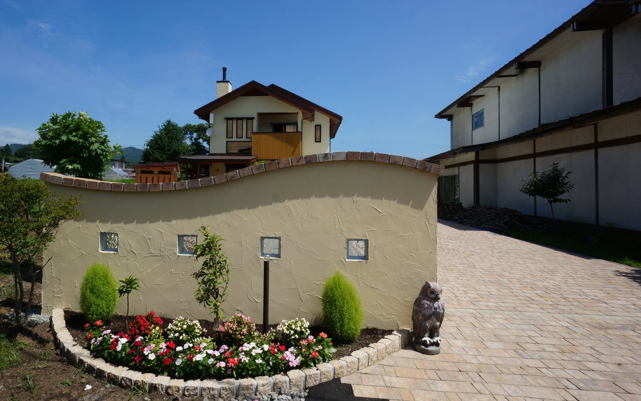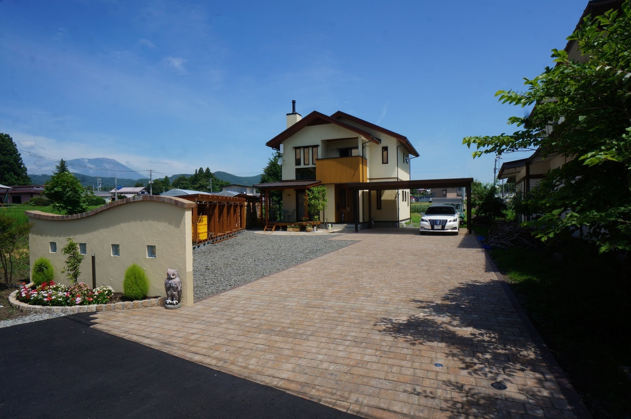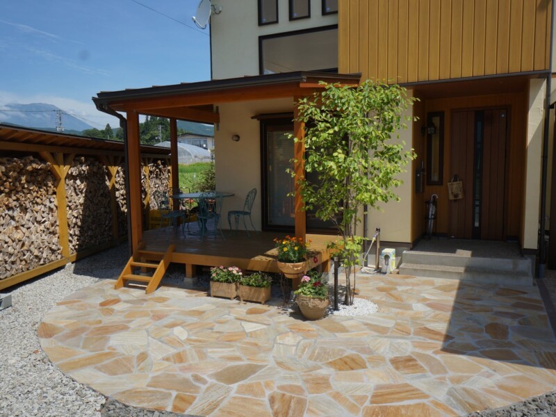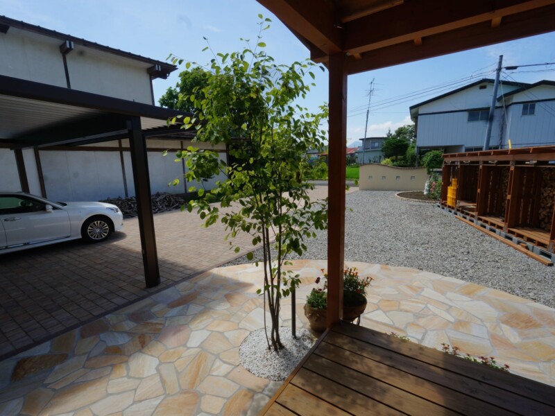 暮らしに和むガーデン・エクステリア ウッドデッキカーポートグランピングタイルテラスプライベート空間外構滝沢広々とした庭目隠しフェンス 所在地 滝沢市 可愛らしい素材で和みの空間へ 緑豊な環境の中でゆったりとしたインターロッキング敷きのアプローチが続き、玄関前は、石張りのサークルがお出迎えしてくれます。可愛らしいお家に合った可愛らしい素材で和みのガーデン・エクステリアとなりました。 DATA インターロッキング パエリア (エスビック) 塗り壁仕上げ パレットHG (四国化成) 石貼り アースクォーツ (エスビック) その他施工実例 南国風リゾートガーデン 所在地 盛岡市 青と白のリゾートガーデン 所在地 盛岡市 リフォーム・緑鮮やかなグリーンガーデン 所在地 北上市