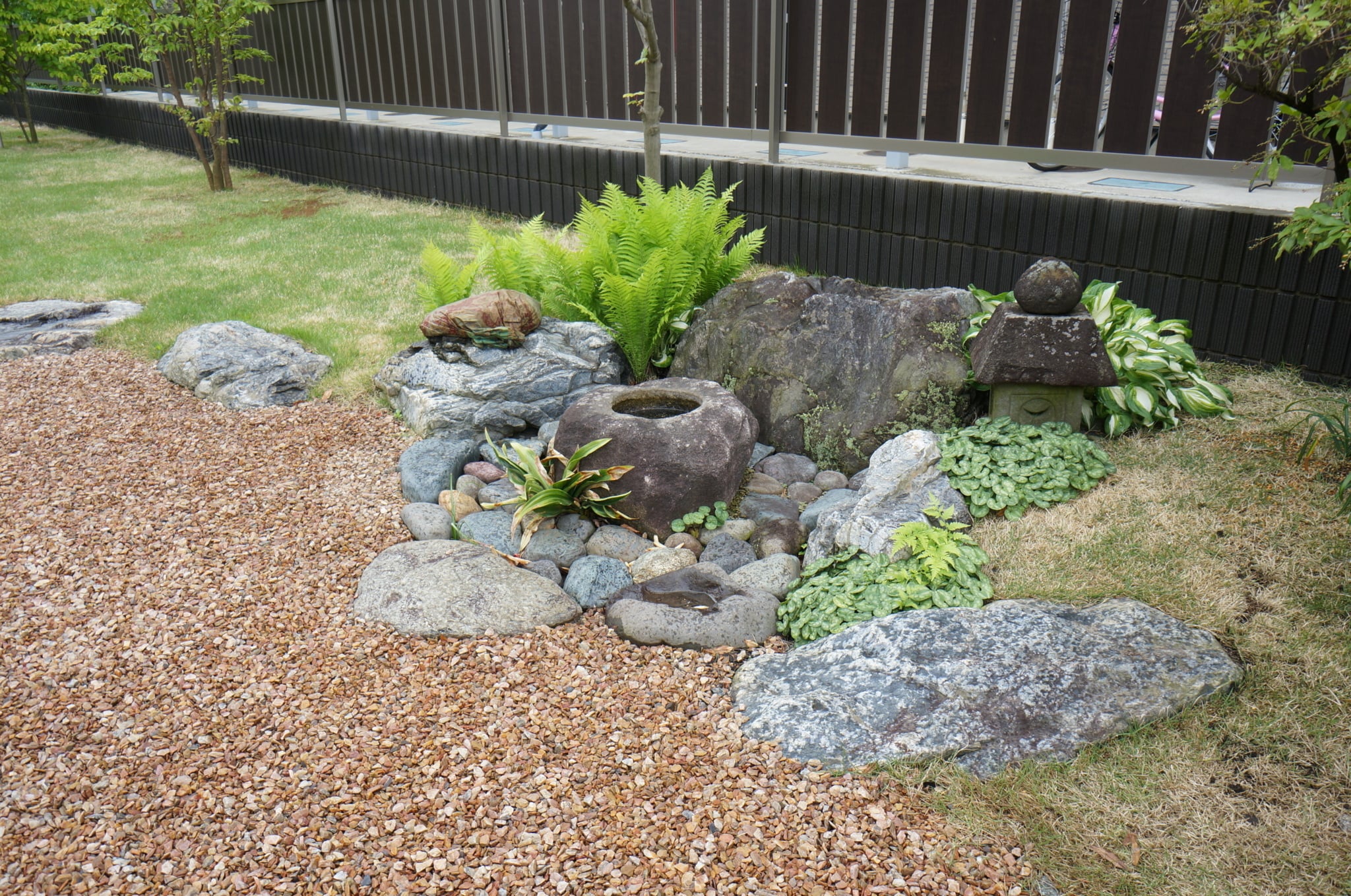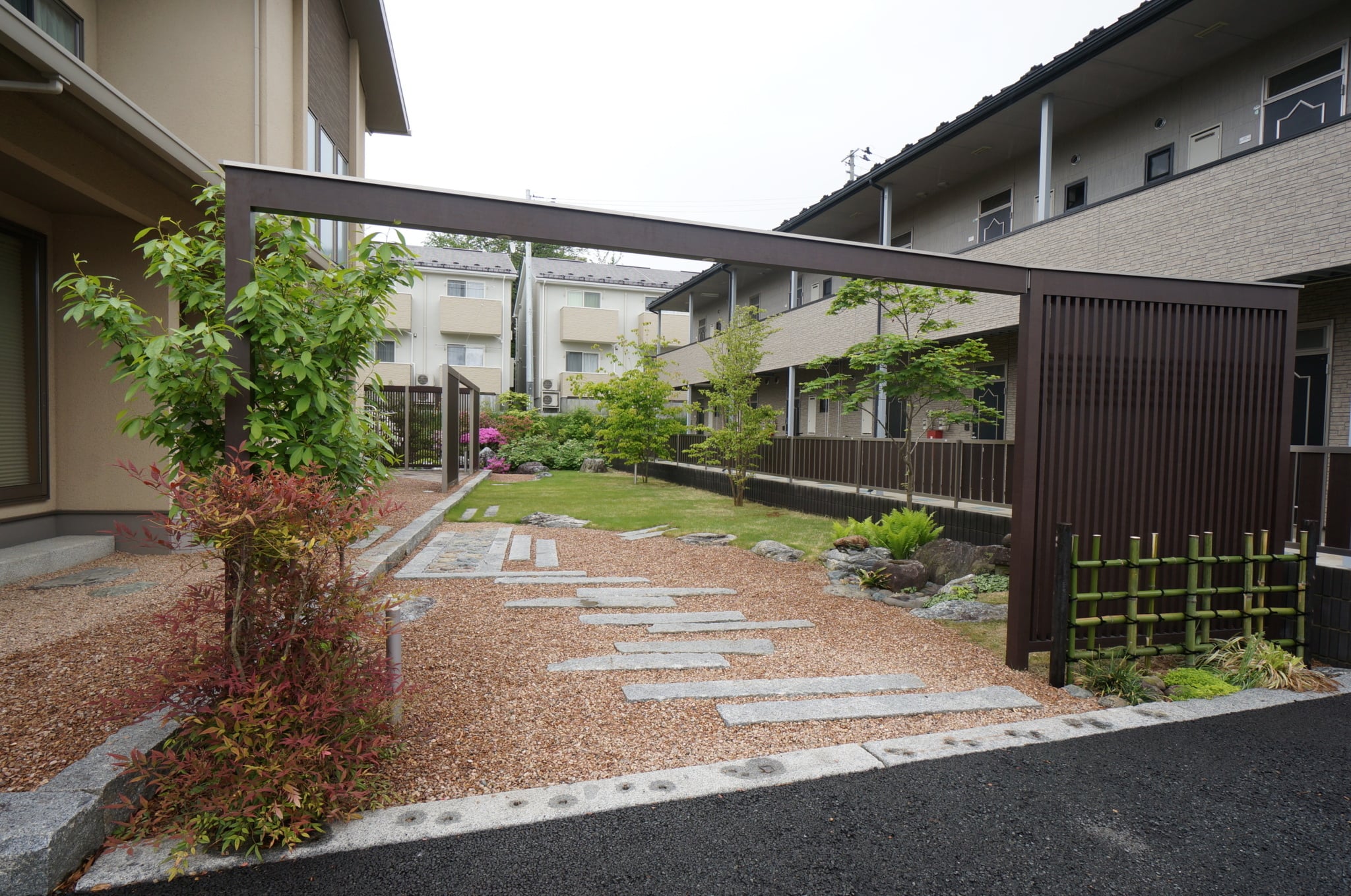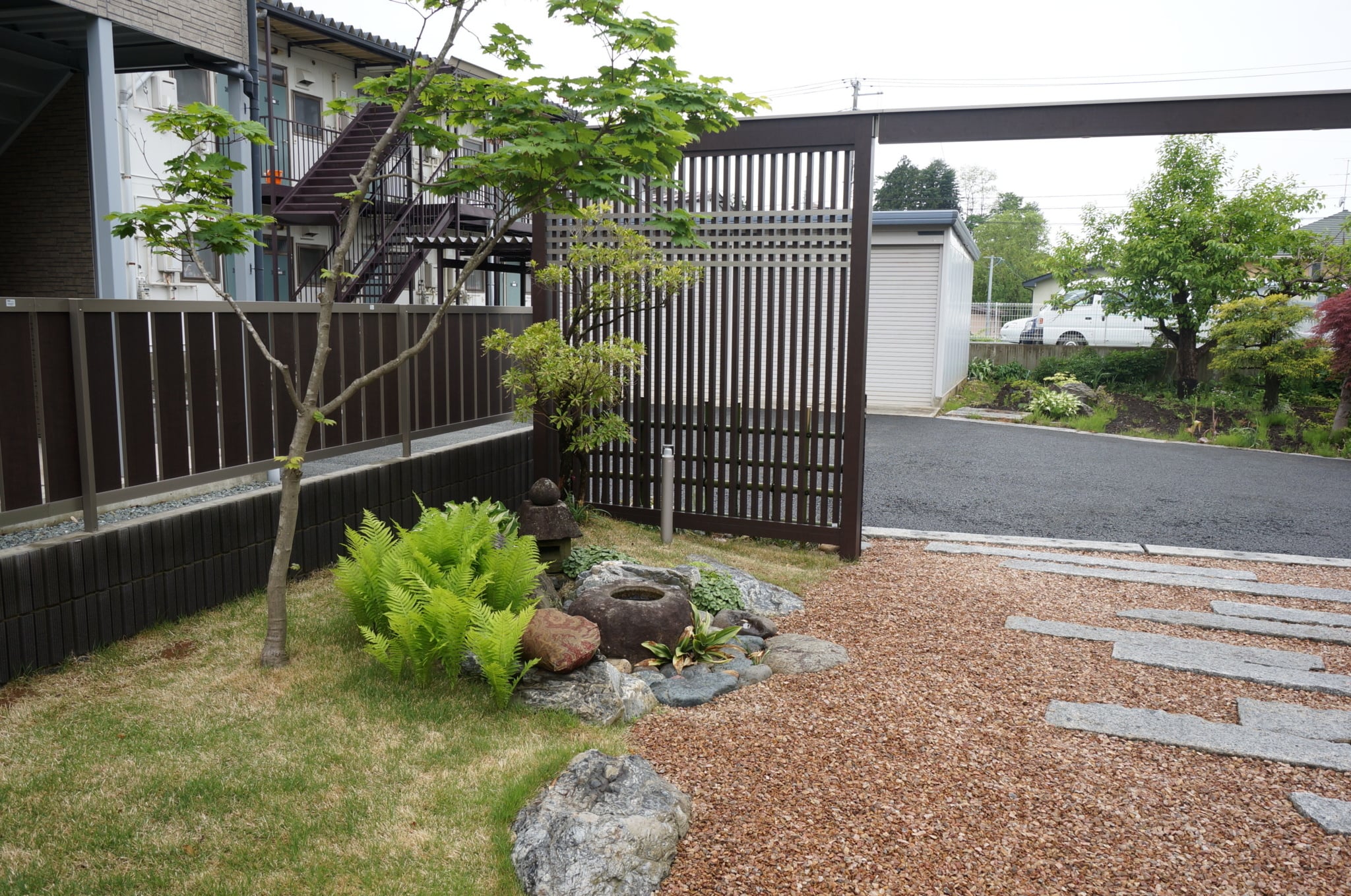 重厚で美しい和のファサード オアシスプライベート空間広々とした庭石張りのテラス 所在地 盛岡市 縦格子のスクリーンで和の雰囲気に 素敵なお家の和の雰囲気に合わせて、もともとあった石や木を使ってお庭をリフォームしました。ほどよい目隠しもご希望でしたので、自然石貼りのテラスのまわりスクリーン(プラスG)で仕切ることによりほどよい目隠しができ、さらにお庭に奥行が出てより広々とした空間に。夜には、スクリーンの縦格子とライトの光が幻想的な雰囲気を出しています。「芝生で孫と遊べるように」とご希望でしたので広い芝生のスペースも作りました。 DATA スクリーン プラスG (LIXIL) 石張りテラス ジャワ鉄平 LEDライト エクスレッズポールライト (タカショー) その他施工実例 南国風リゾートガーデン 所在地 盛岡市 青と白のリゾートガーデン 所在地 盛岡市 リフォーム・緑鮮やかなグリーンガーデン 所在地 北上市
