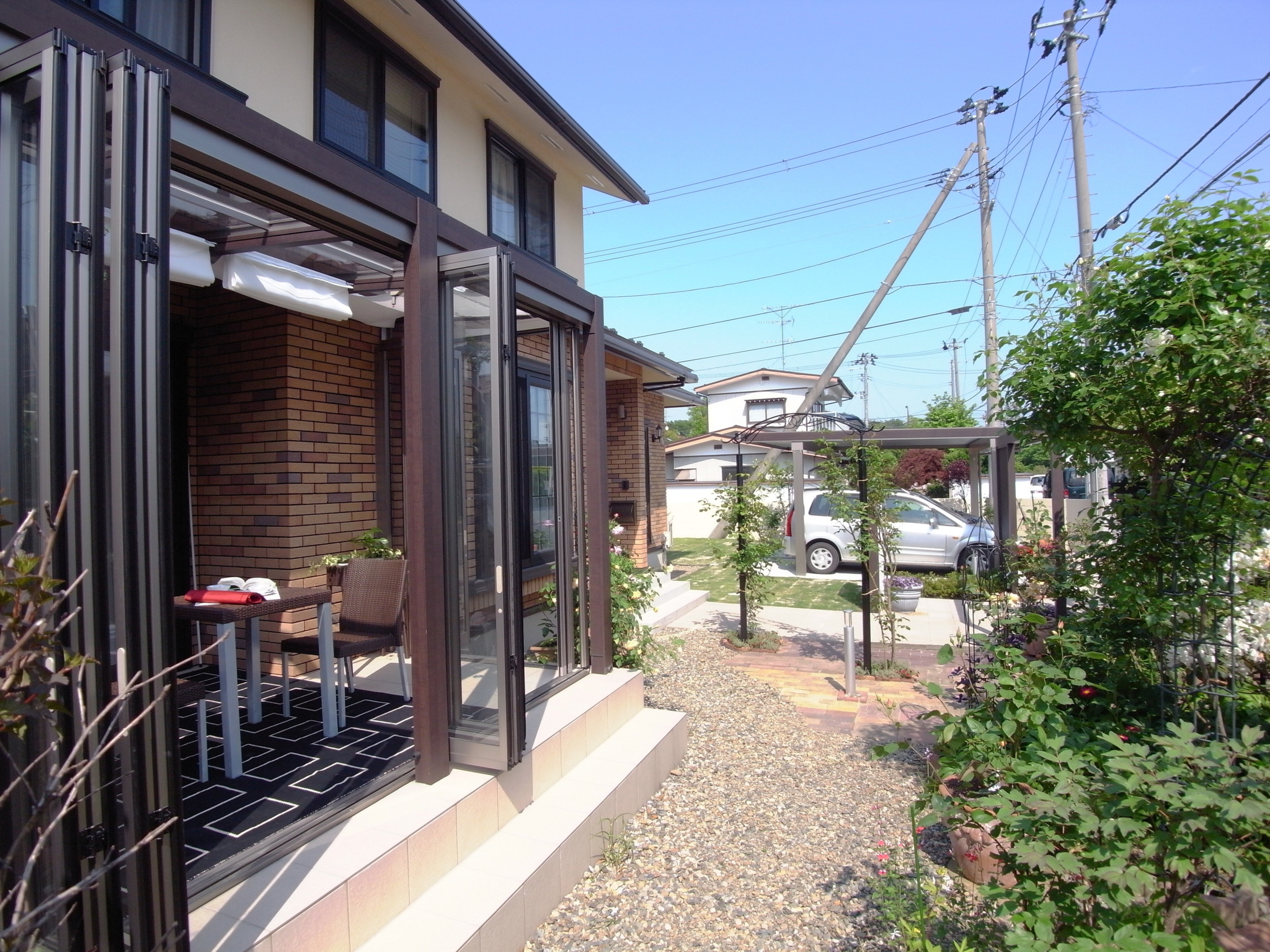 花あふれるガーデン オアシスガーデンルームグランピングタイルテラスプライベート空間広々とした庭 所在地 奥州市 季節ごとにお庭を彩る植物に癒されて お花の大好きなS様がお庭でもっと楽しめるようにガーデンルームをつけました。たくさんの草花があふれる小路を作ったり、バラのアーチなど四季折々の景色を楽しめるお庭です。ガーデンルームから眺めるお庭のは最高です。アプローチに設置した縦格子のスクリーンもよいアクセントになって建物をより一層引き立てています。 DATA ガーデンルーム ジーマ (LIXIL) インターロッキング オールラウンドペイブ・オリジナル (エスビック) スクリーン プラスG (LIXIL) その他施工実例 南国風リゾートガーデン 所在地 盛岡市 青と白のリゾートガーデン 所在地 盛岡市 リフォーム・緑鮮やかなグリーンガーデン 所在地 北上市