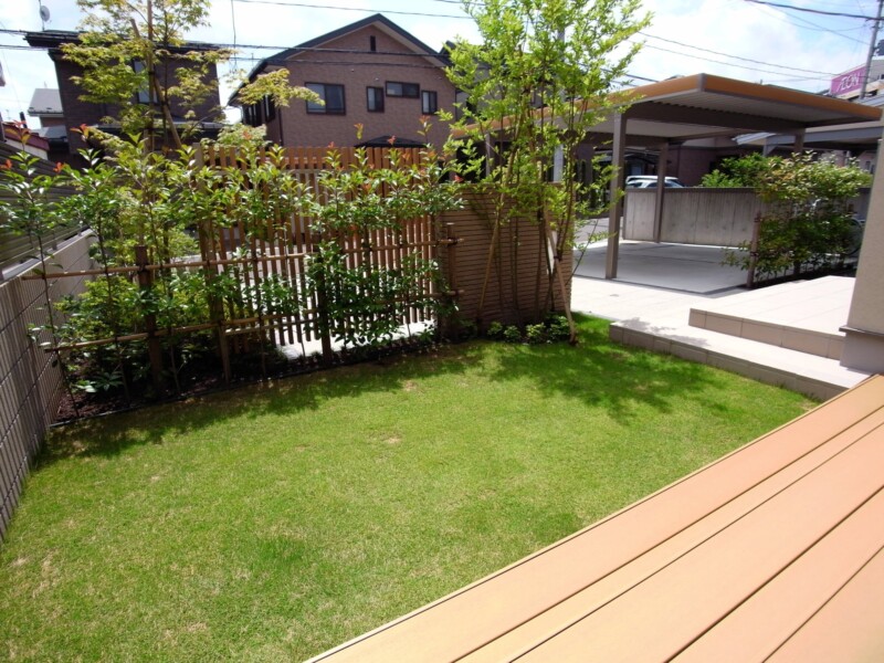 植栽は、モミジ、ソヨゴ、ブルーベリー、シモツケ、クリスマスローズなど四季を通して