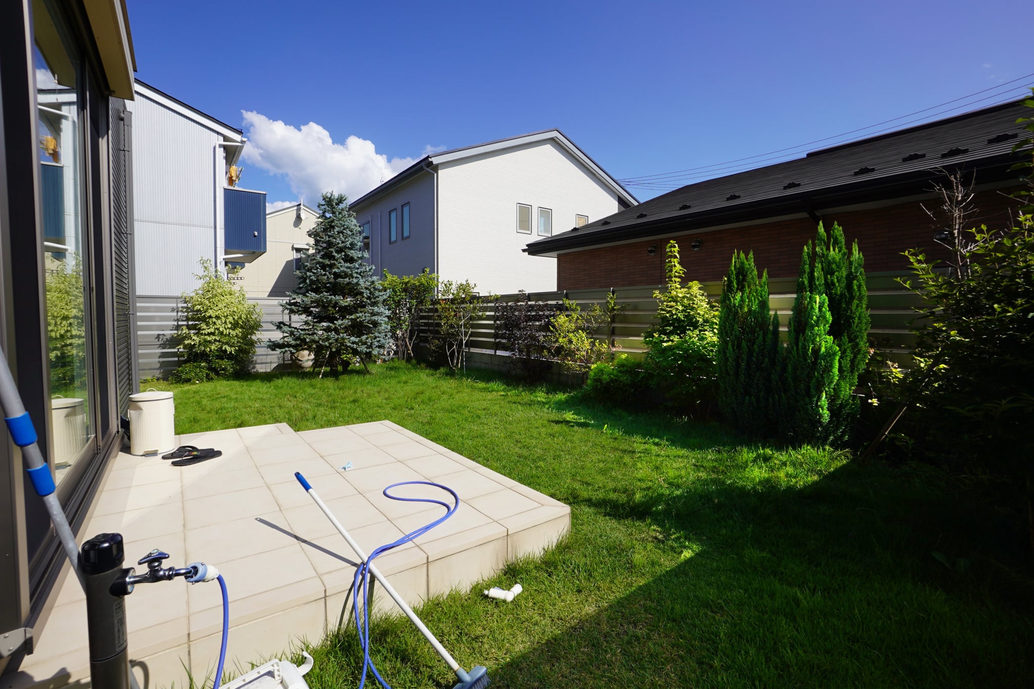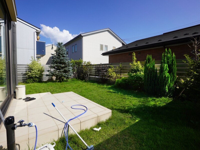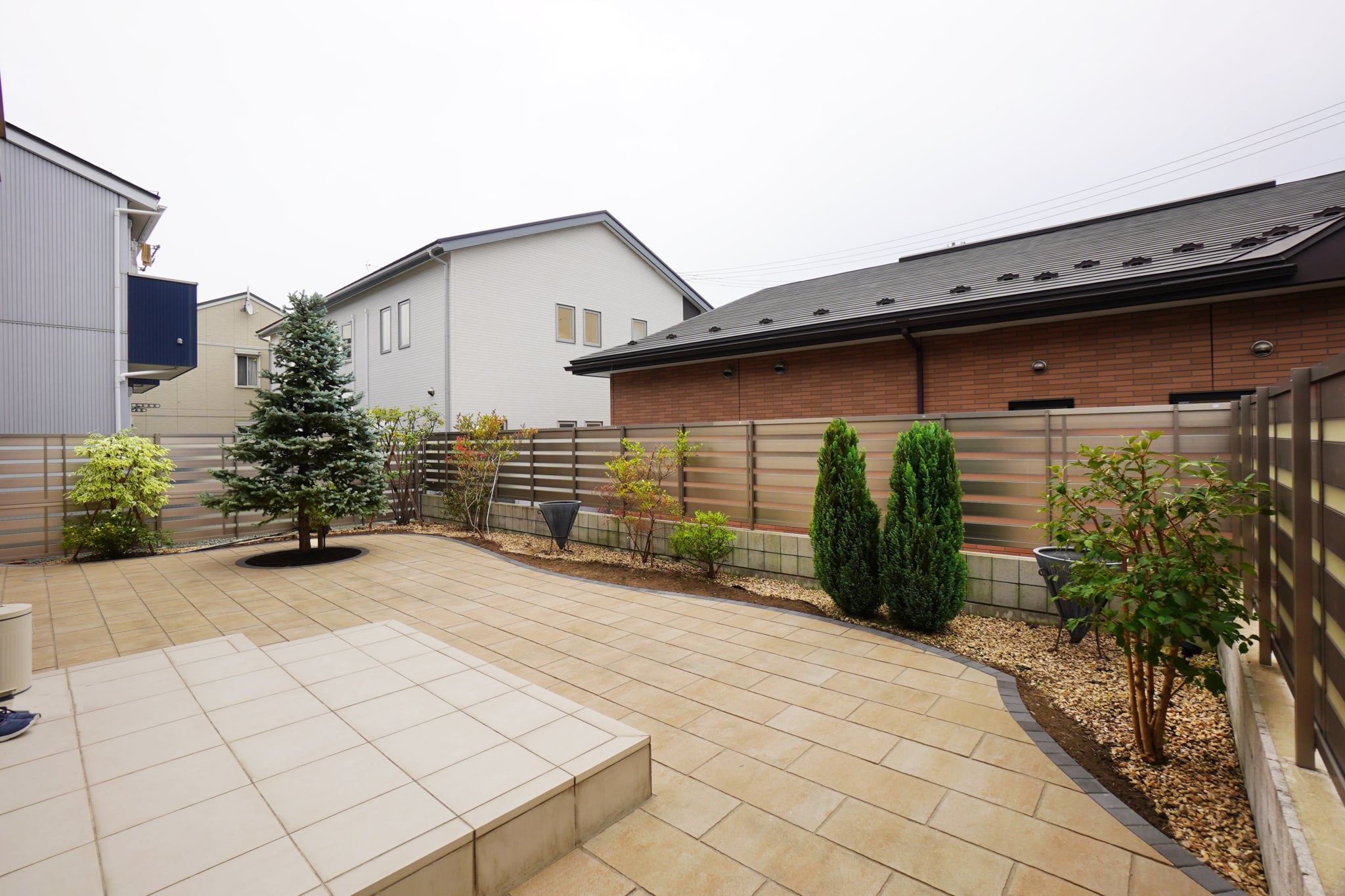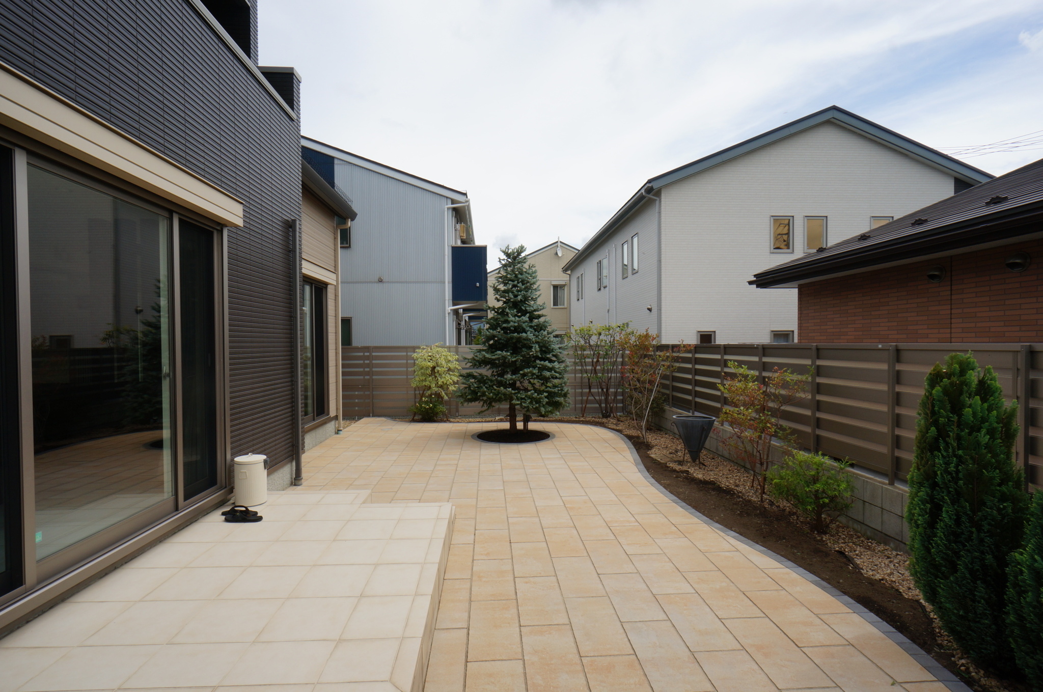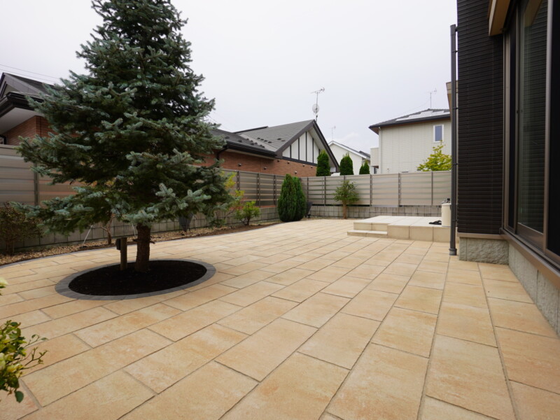 化粧ブロックで作り直しウォールライトを取付けて明るく華やかな印象に仕上がりました。お庭は芝生でしたが、メンテナンスが大変ということでコンクリートの平板敷のテラスにしてこちらも明るい印象になりました。既存の樹木も剪定してすっきりと。使いやすくメンテナンスも楽で素敵なお庭になりました。